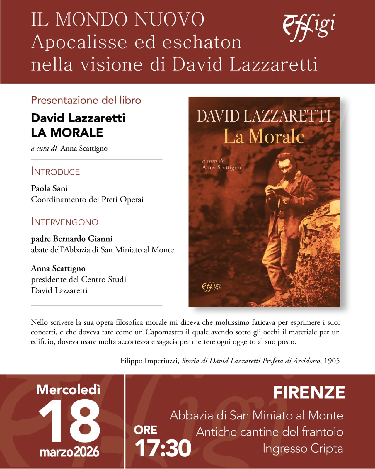 Mercoledì 18 marzo 2026, ore 17.30: «Il mondo nuovo. Apocalisse ed eschaton nella visione di David Lazzaretti». Incontro con Anna Scattigno Eventi