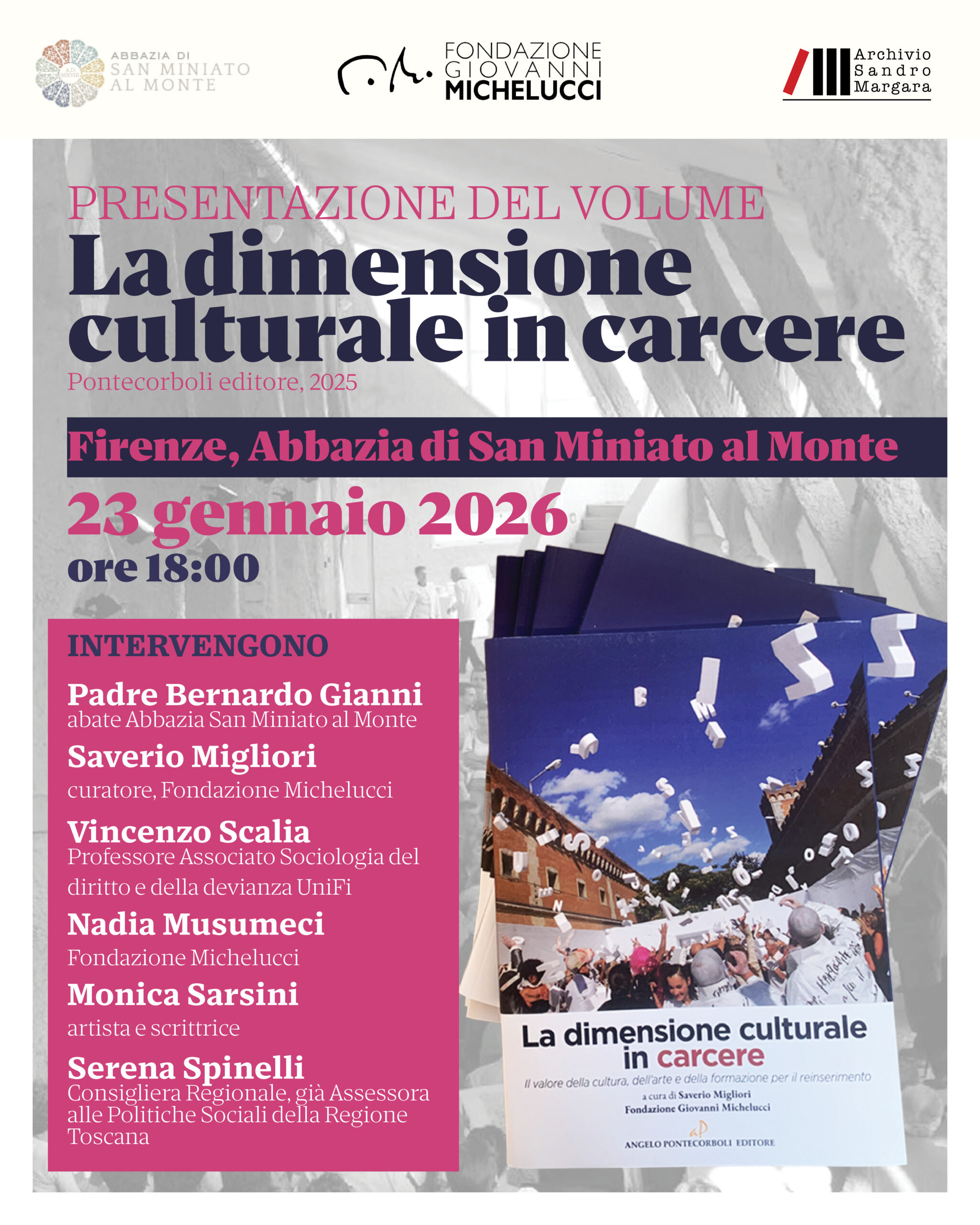 Venerdì 23 gennaio 2026, ore 18: «La dimensione culturale in carcere». Una riflessione a più voci a margine dell’omonimo libro